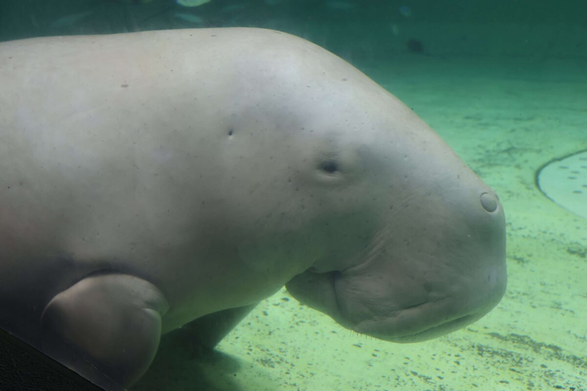 フィリピンのパラワン島で親とはぐれていたところを保護され、当時同水族館で飼育されていたじゅんいち(♂)のお嫁候補としてやってきました。しかし2011年にじゅんいちが亡くなり、それからは飼育下日本最後の個体としてジュゴンの魅力を伝え続けています。