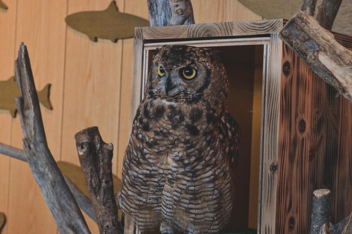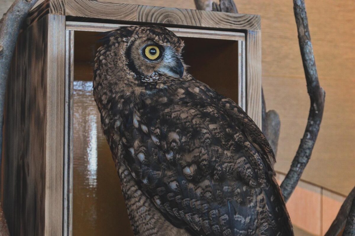 木目調が素敵な館内に入っていくと最初に出迎えてくれたのはアフリカワシミミズク