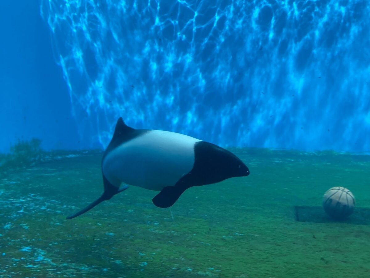 このイロワケイルカ、日本で見られるのはなんと鳥羽水族館(三重県)とここ仙台うみの杜水族館(宮城県)だけなんです!ものすごくレアですよね〜