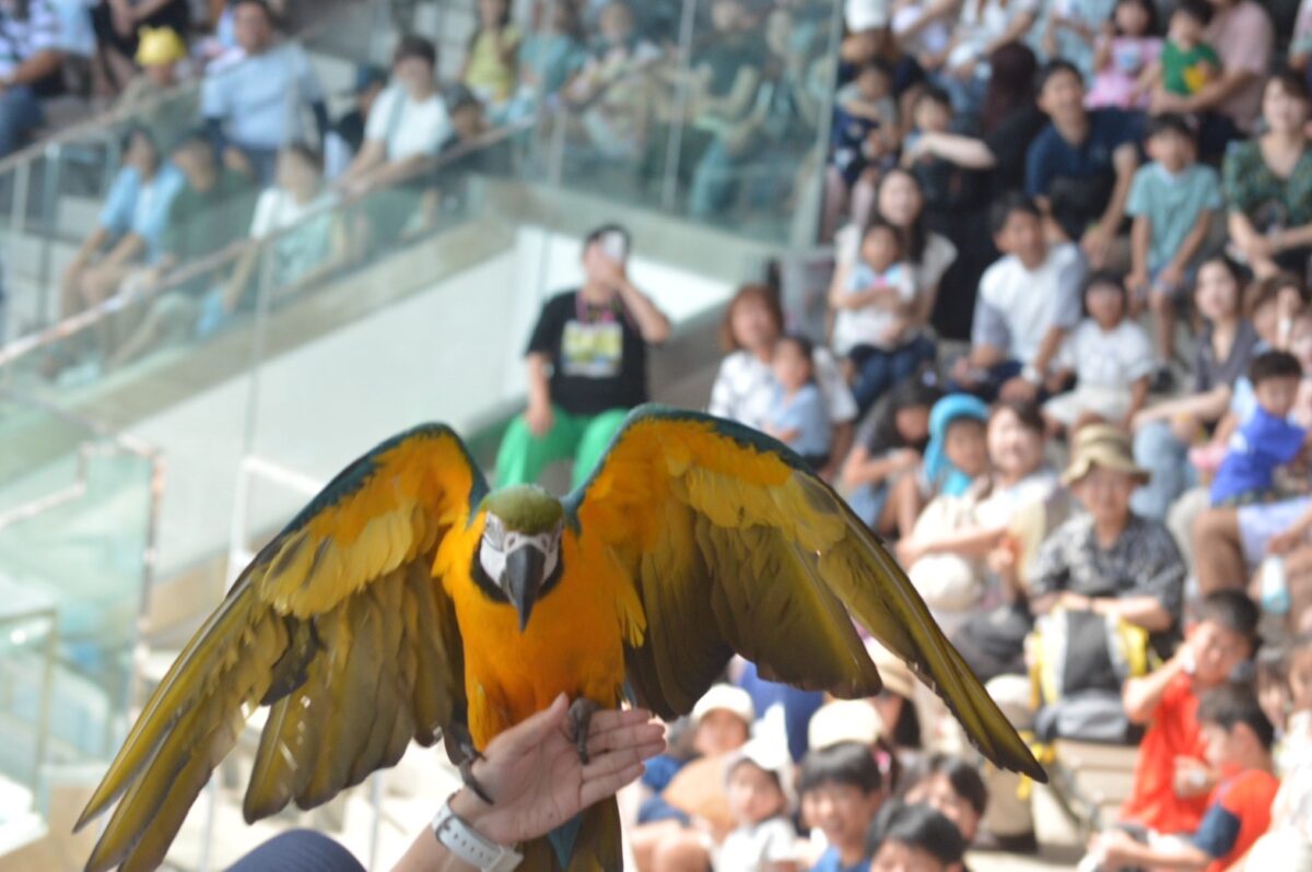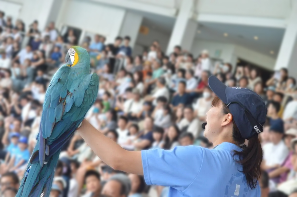 水族館といえば、イルカショーだったりアシカショーですよね!うみの杜水族館では一味違ったショーが楽しめるんです。なんと、パフォーマンスの仲間に鳥類が加わっているんですよ!