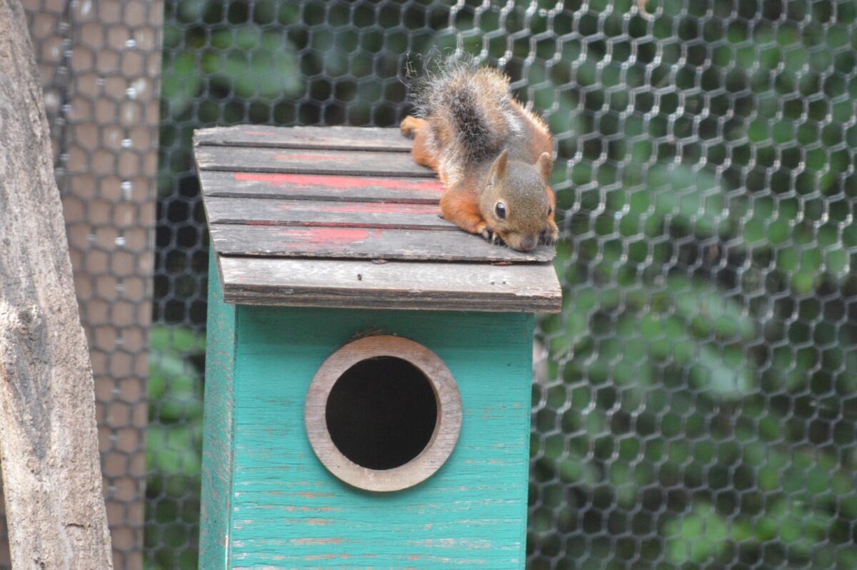 他にもカラフルな巣箱の上で休憩するリスの様子が見られちゃいます♪