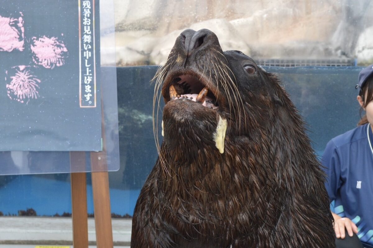 自分が訪れたシーズンが夏ということもあり、口に加えた筆で花火を描く残暑見舞いパフォーマンスも見られました。こういうシーズン絡みのイベントと生きもののコラボが見られるのも魅力ですよね!