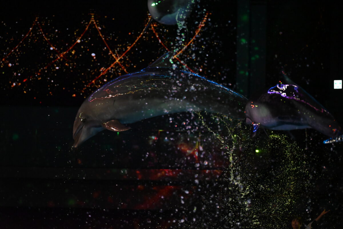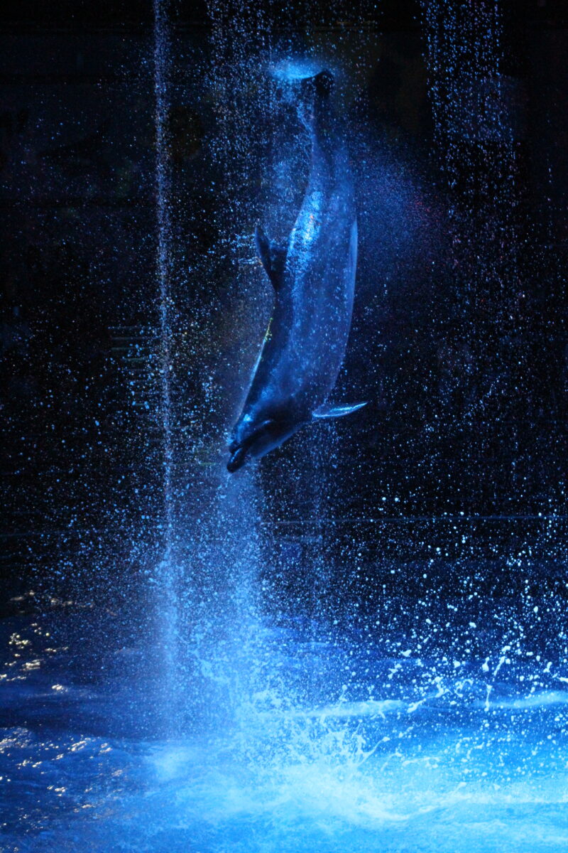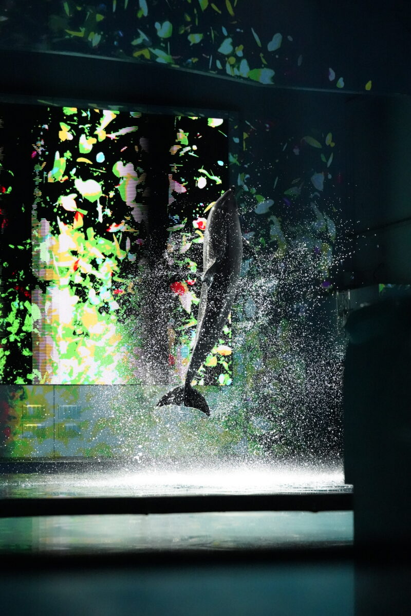 アクアパーク品川で特に注目したいのは、やはりイルカショー です。このショーは、照明・音響・映像演出を組み合わせた構成が大きな特徴で、イルカショーの中でも非常に高い完成度を誇ります。初めて見る人でも「すごい」と感じられるでしょう。