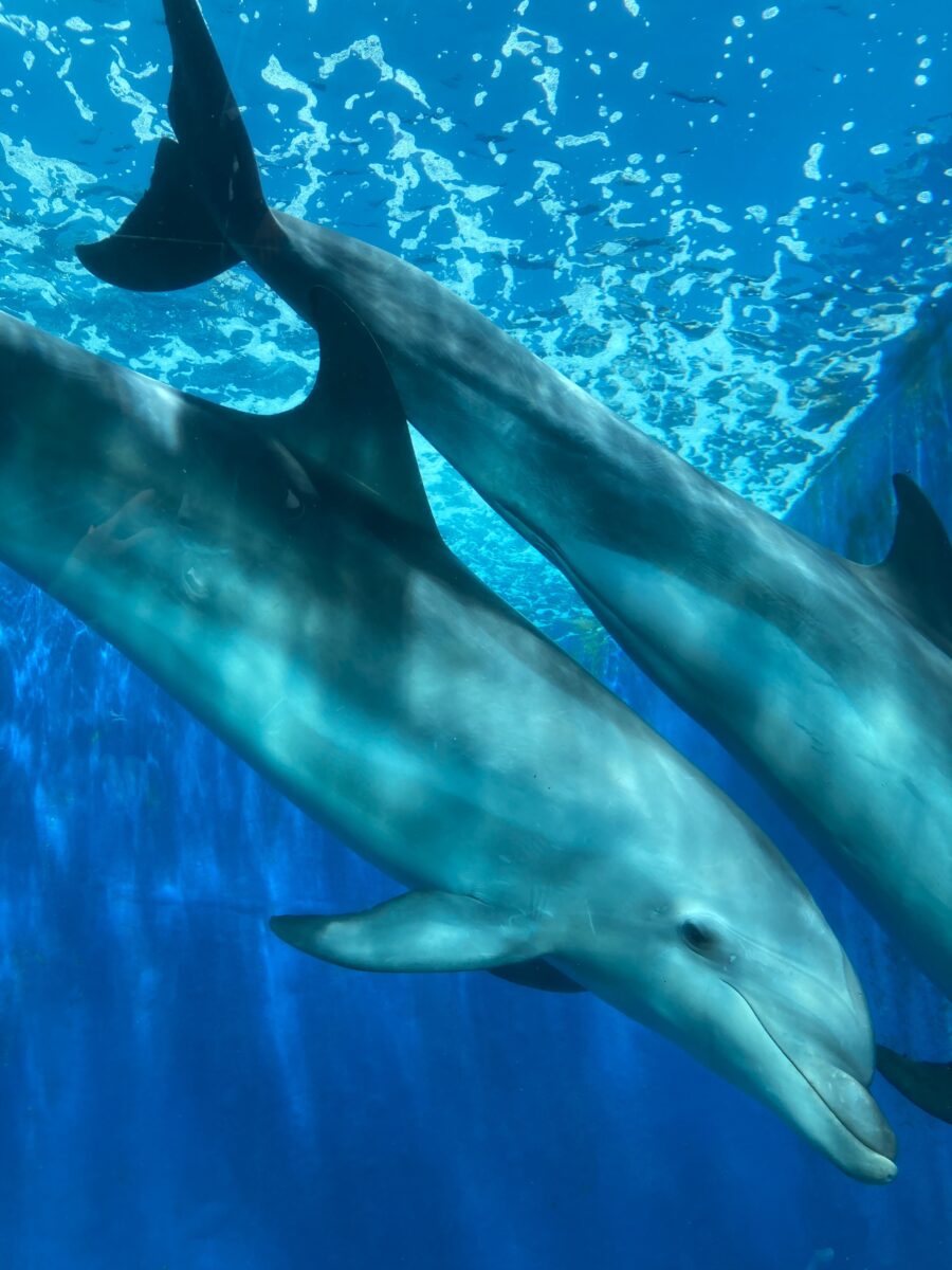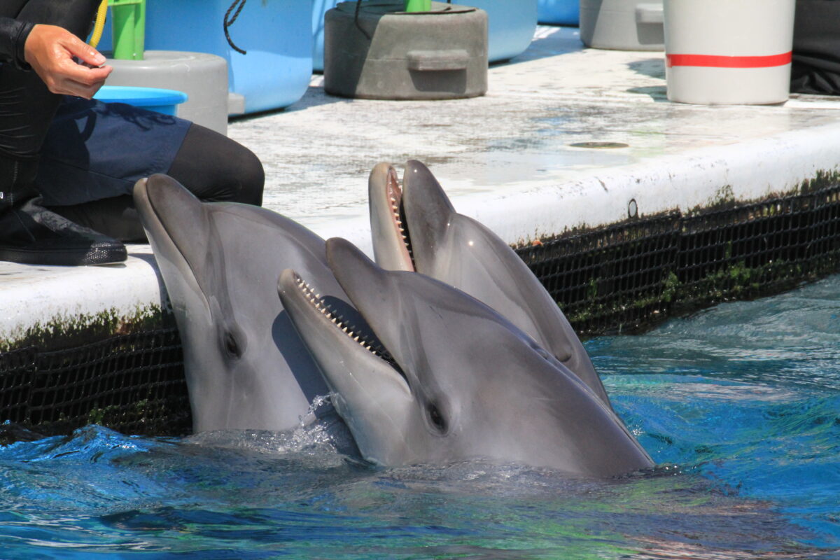 イルカ好きとして特におすすめしたいのが、2024年7月から8月にかけて、ひと夏の間に誕生した3頭のバンドウイルカの赤ちゃん です。名前は「わたげ」「りおん」「ぽぽね」。名前の由来はたんぽぽから来ています。ぽぽねのお母さんイルカ「アレカ」の授乳不良があった際、たんぽぽの根を煎じた漢方を与えたところ、授乳不良が改善したという出来事をきっかけに「たんぽぽ」にちなんだ愛称になりました。まだ幼く、元気いっぱいに泳ぎ回る様子を観察することができます。とても可愛いので、ぜひ多くの人に“たんぽぽ三姉妹”を見に来てほしいです。