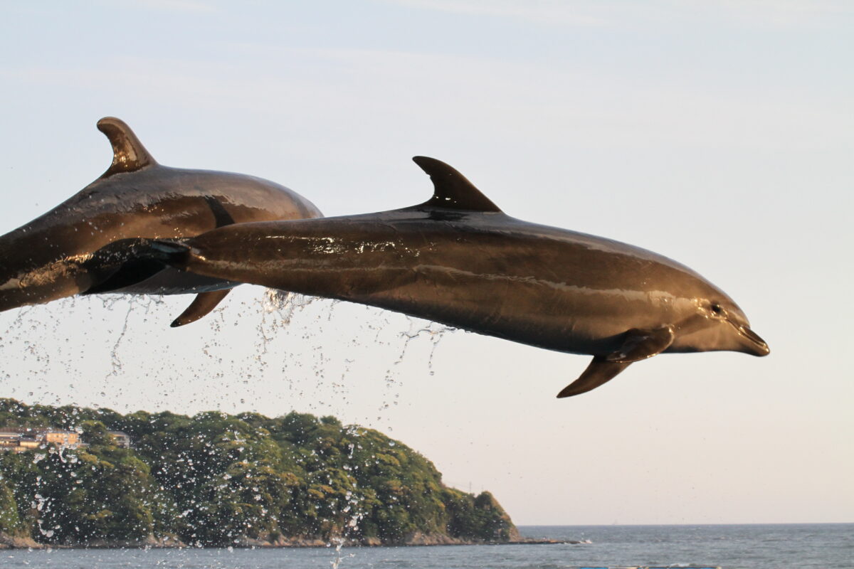 また、イルカショースタジアムは屋外に設置されており、背景には江の島と相模湾が広がります。夕方には、海と江の島、そして夕日を背にした中でショーが行われます。夕方のイルカショーは座席の後ろのほうから景色を見ながら観覧することをおすすめします。