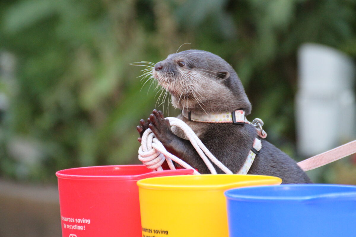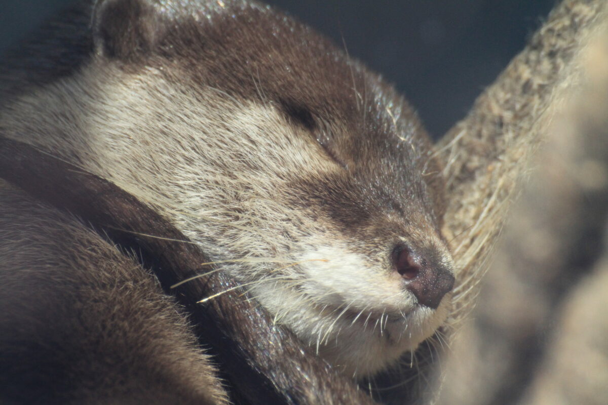 イルカ以外では、コツメカワウソの展示もおすすめです。非常に近い距離で観察できる構造になっています。