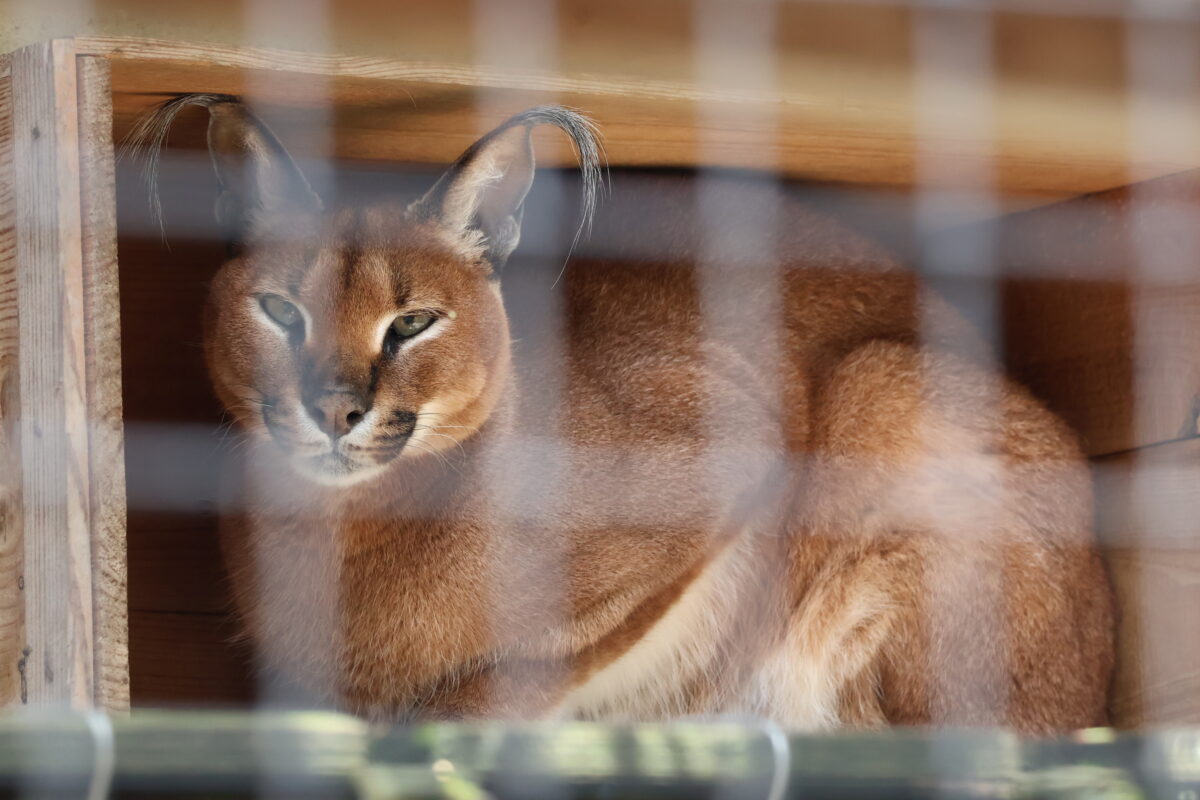 アフリカから南アジアにかけて幅広く生息する中型のネコ科動物。黒くフサフサな毛の生えた耳が特徴。国内では姫路市立動物園とごかつら池どうぶつパークの2箇所でのみ飼育される。