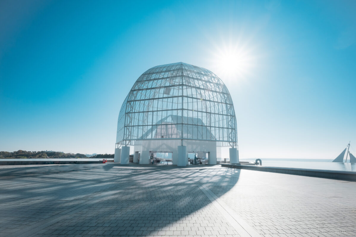 まず水族園に入場すると美しいガラスドームが待ち受けています。このドームは著名な建築家である、谷口吉生氏