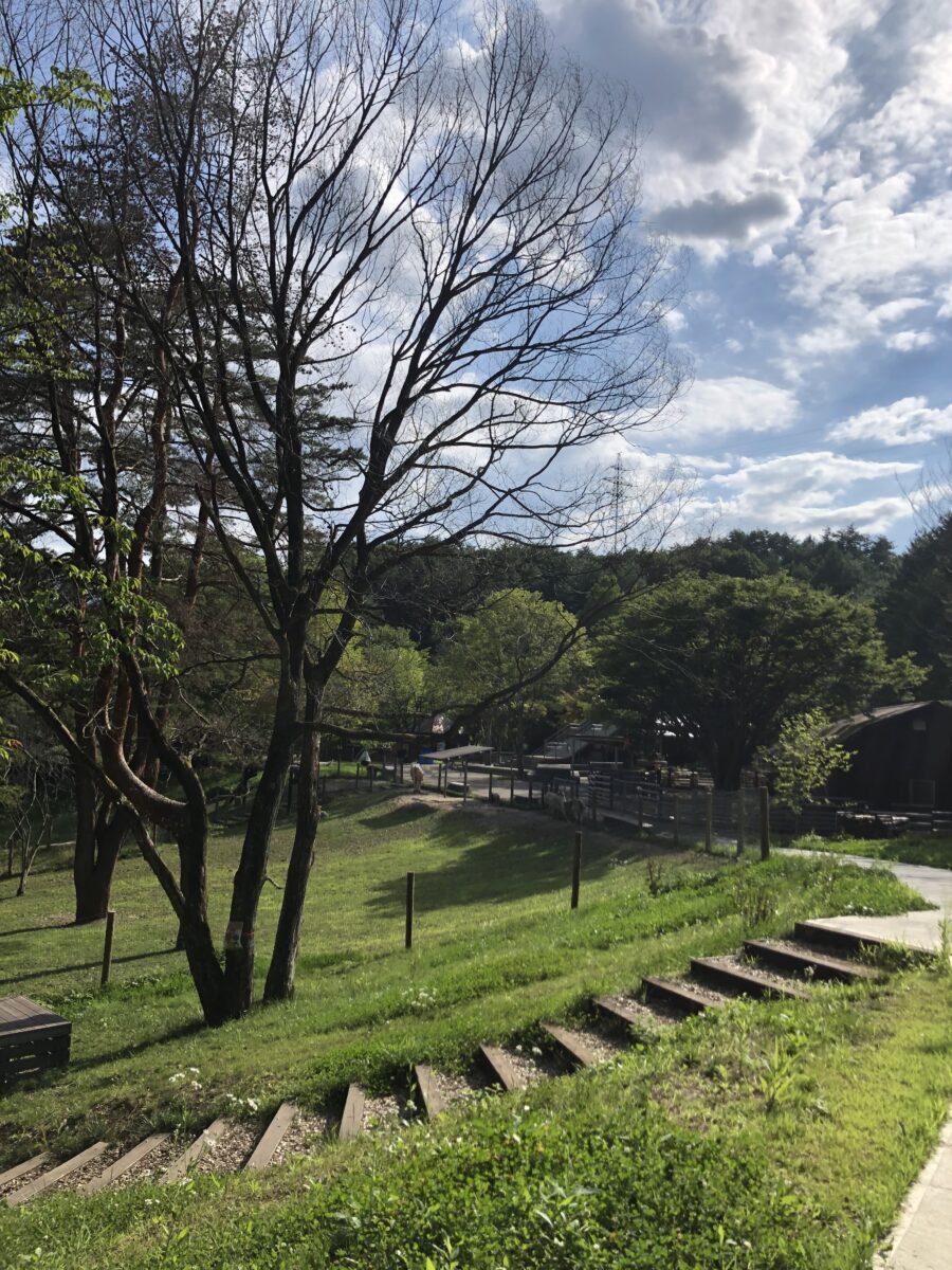どちらの展示場も草本類の種をまいて緑地化しようとしているそうですが、両展示場の差によって動物種による展示場への影響の差も見る事が出来ます。