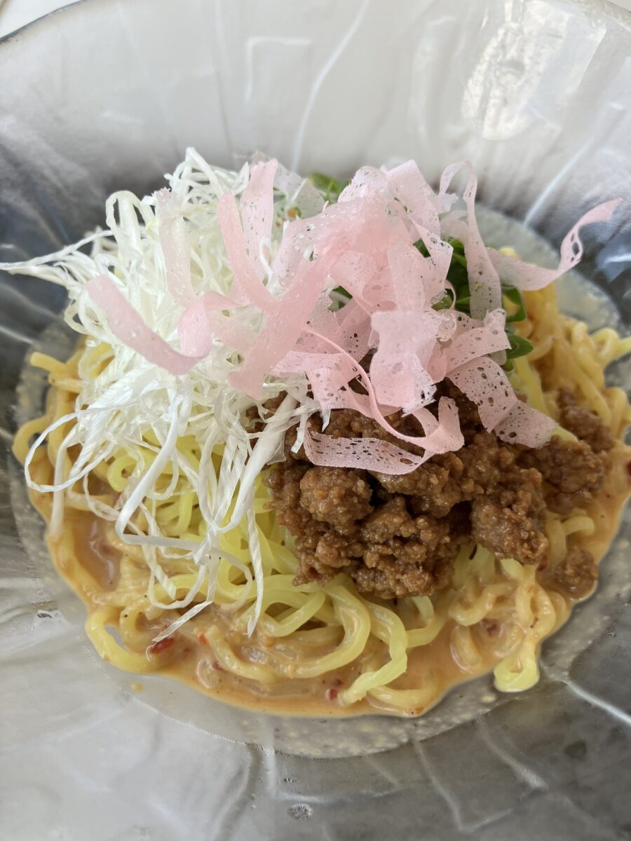 季節ものですが、とべ動物園の冷やし担々麺!愛媛名物の削りかまぼこが乗ってます