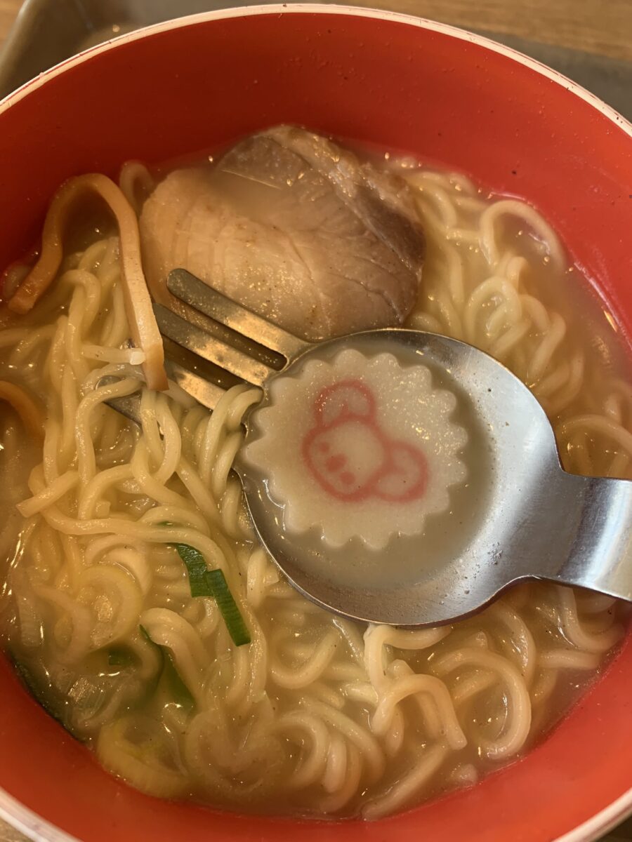 東山動植物園で食べた名古屋メシ、スガキヤのオリジナルラーメンが素晴らしかったです スプーンとフォークのどっち付かずみたいなやつで食べましたが美味しかったですね
