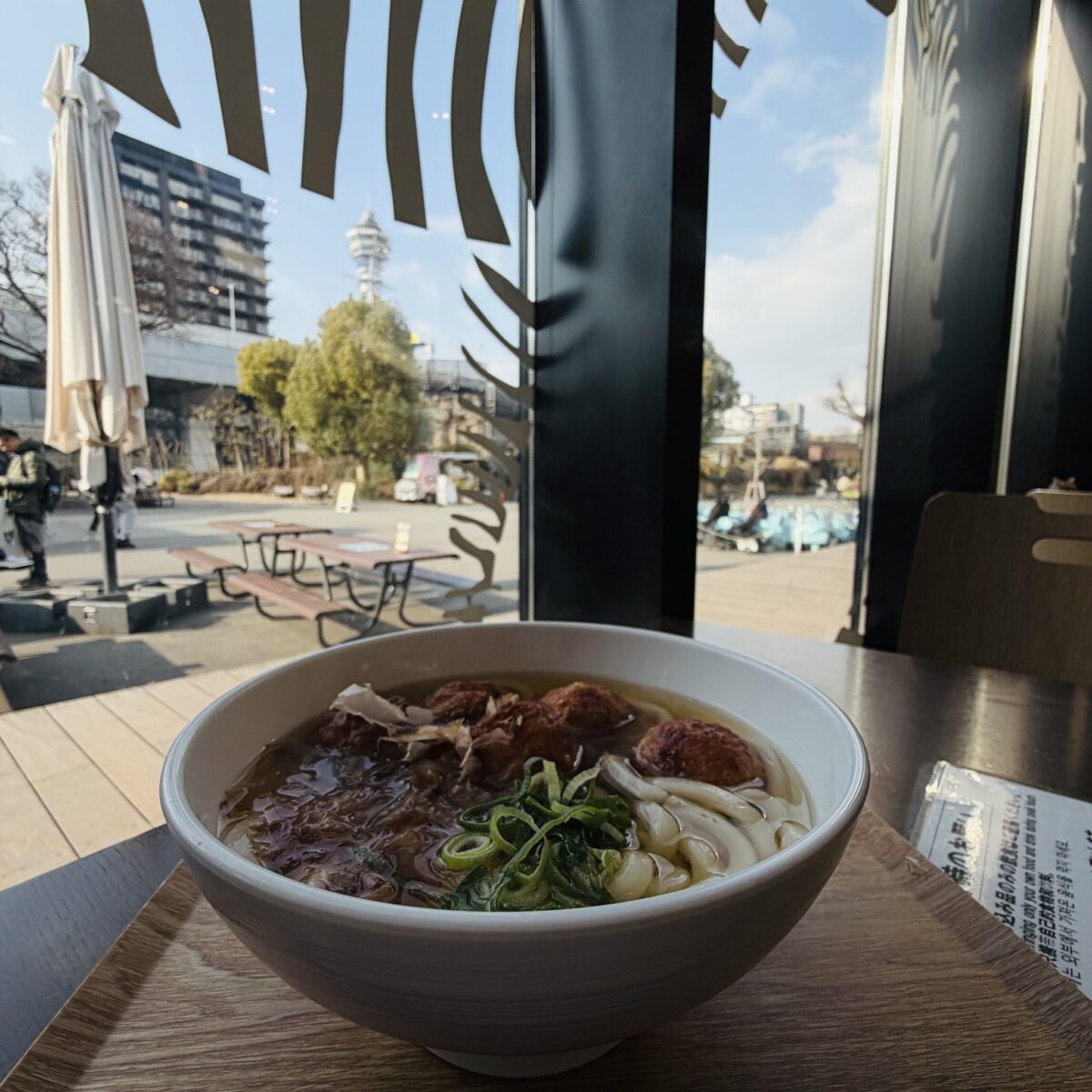 天王寺動物園 通天閣眺めながらの 「たこ焼きうどん」 おうどんにたこ焼き入ってるとかめちゃ嬉しい〜! 温まりましたー!
