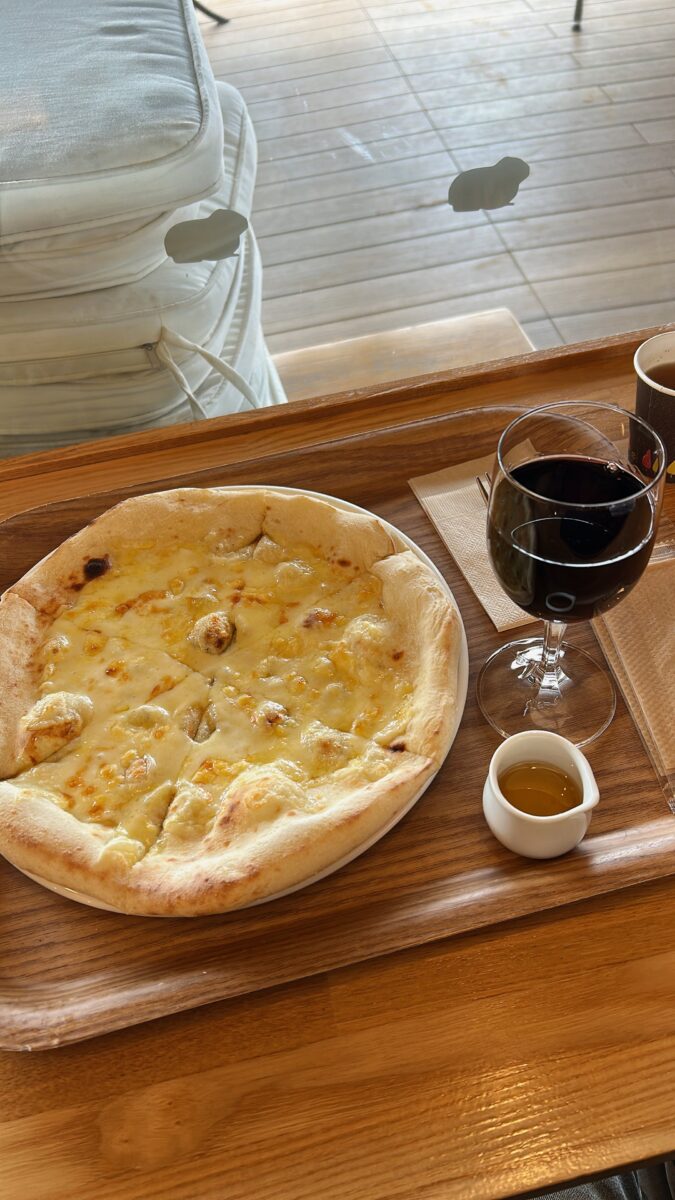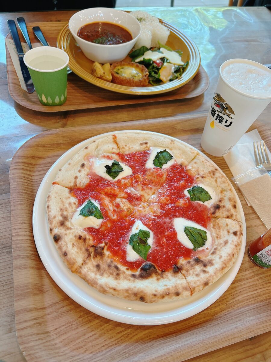 八木山動物公園グーグーテラスの、石窯で焼いた本格的なピザ。蔵王のモッツァレラチーズ使用。生地も美味しい。そしてグーグーテラス自体がとても居心地が良い